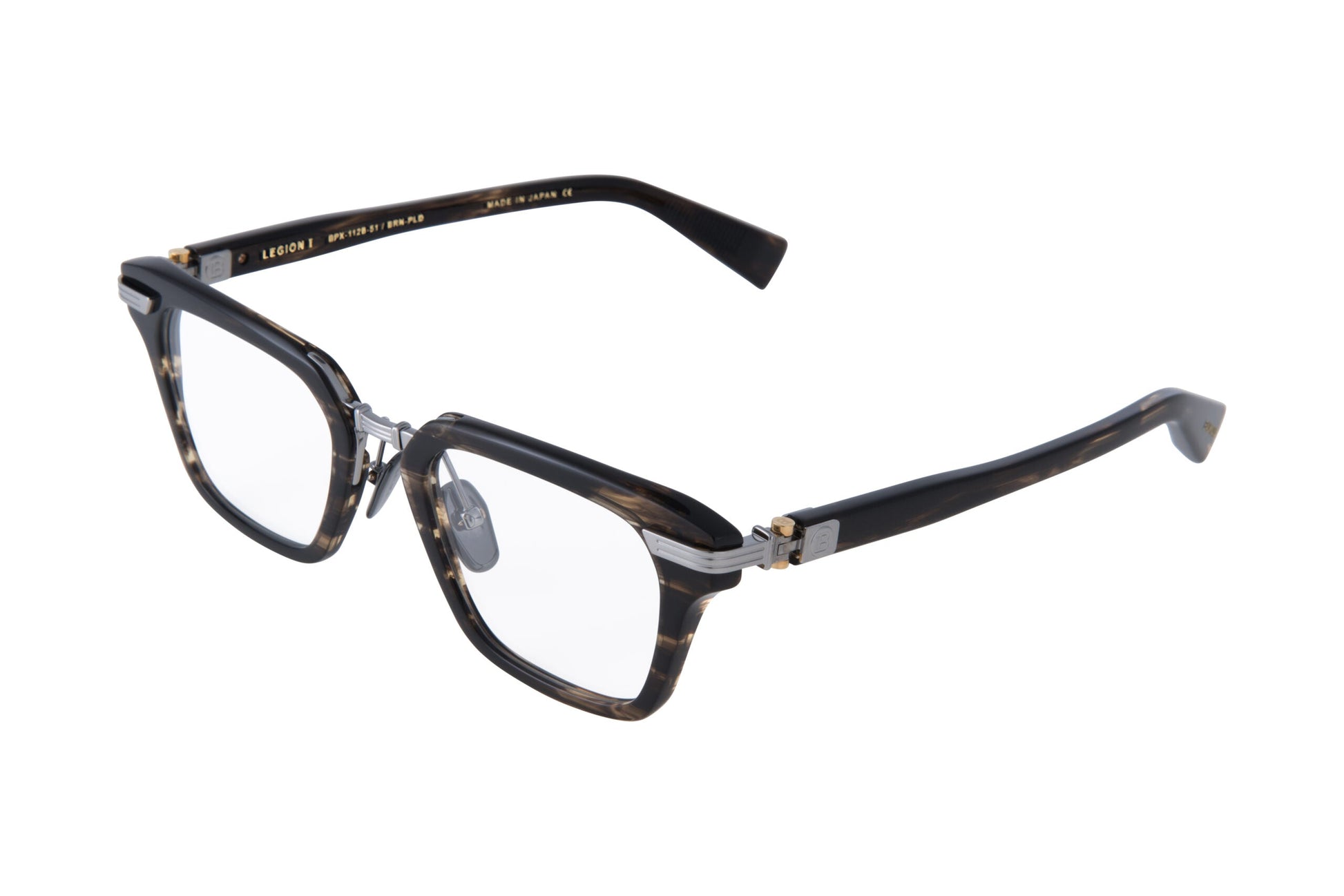 "For me, it?s important that any optical eyewear design that bears the Balmain name be a frame that I would want to wear?and I could definitely see myself putting on the Legion-I each morning,? notes Olivier Rousteing. With a pared-back, unisex silhouette that recalls the sleek and sexy style of mid-century French cinema icons and Mad-Men execs, the Legion-I makes clear its Balmain pedigree, with delicate titanium details, including the golden B monogram decorating each arm.