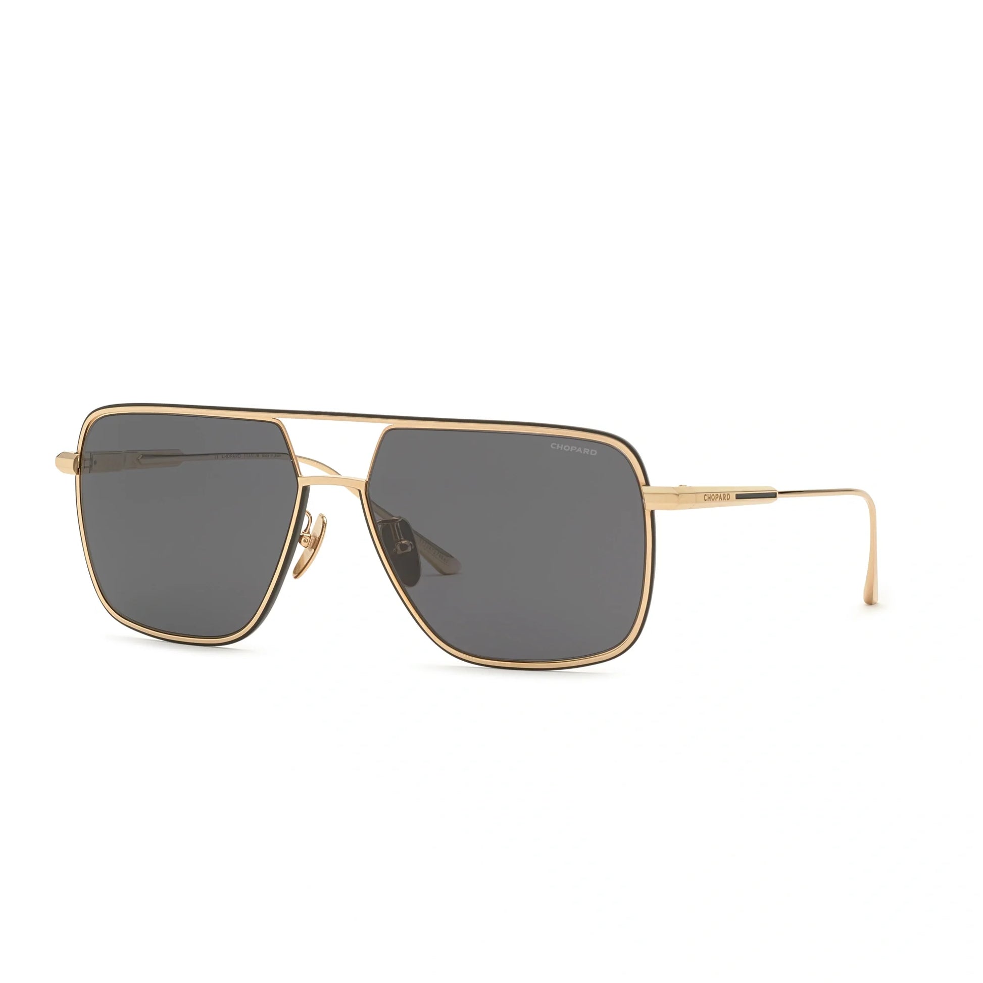 Step out in luxury wearing the Chopard SCHF83M sunglasses. The aviator-style frame is made in lustrous, corrosion-resistant metal that retains its shape through extended wear. The slim temples grow slightly wider at the tips for added stability behind the ears, and boast a chic keyhole detail near the brow end for an elegant touch. A signature butterfly adorns each temple as a reminder of your impeccable taste when it comes to luxury accessories. Make a statement with these glamorous aviator sunglasses from Chopard.