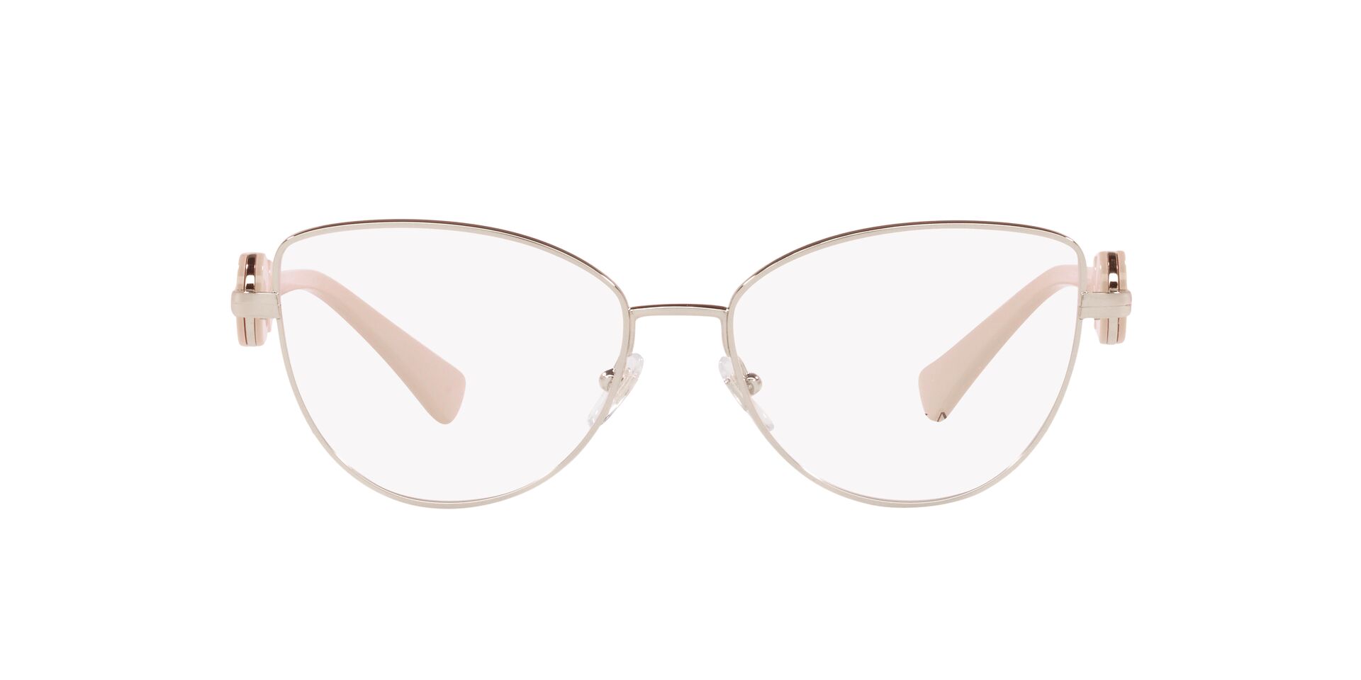 The Versace VE1284 eyeglasses for women are a contemporary take on the classic cat-eye style. The bold metal rims are delicately constructed, with fine curves and subtle angles that draw attention to your eyes. The slim metal temples curve inward gently for stability behind the ears, with added appeal near the brow end. With cutting-edge design and quality construction throughout, these chic glasses from Versace will look great every day.